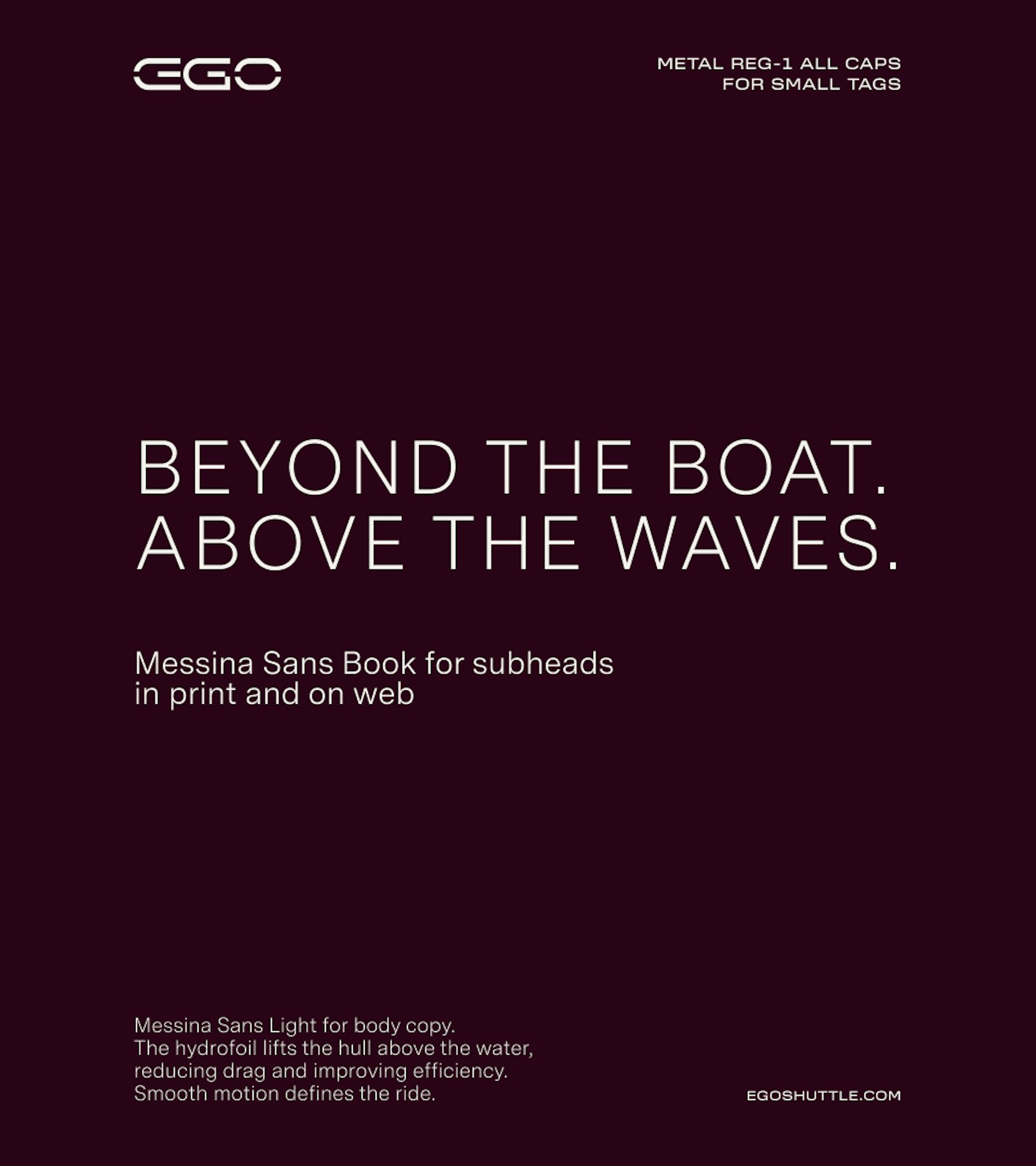 The letter “E” in EGO is shaped to resemble both an electric tumbler and the Morse code dash - reinforcing the brand’s foundation in clean propulsion, movement and communication.