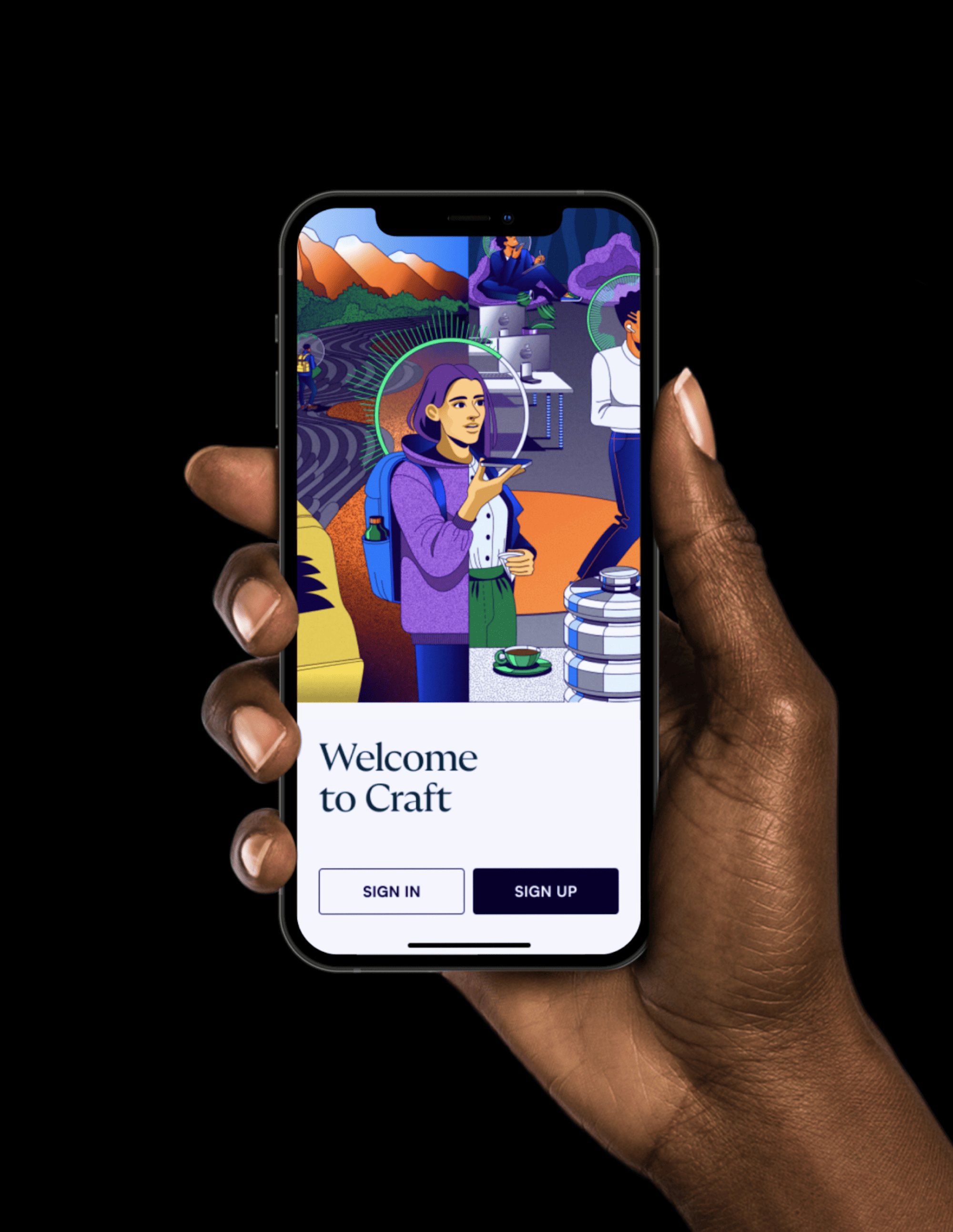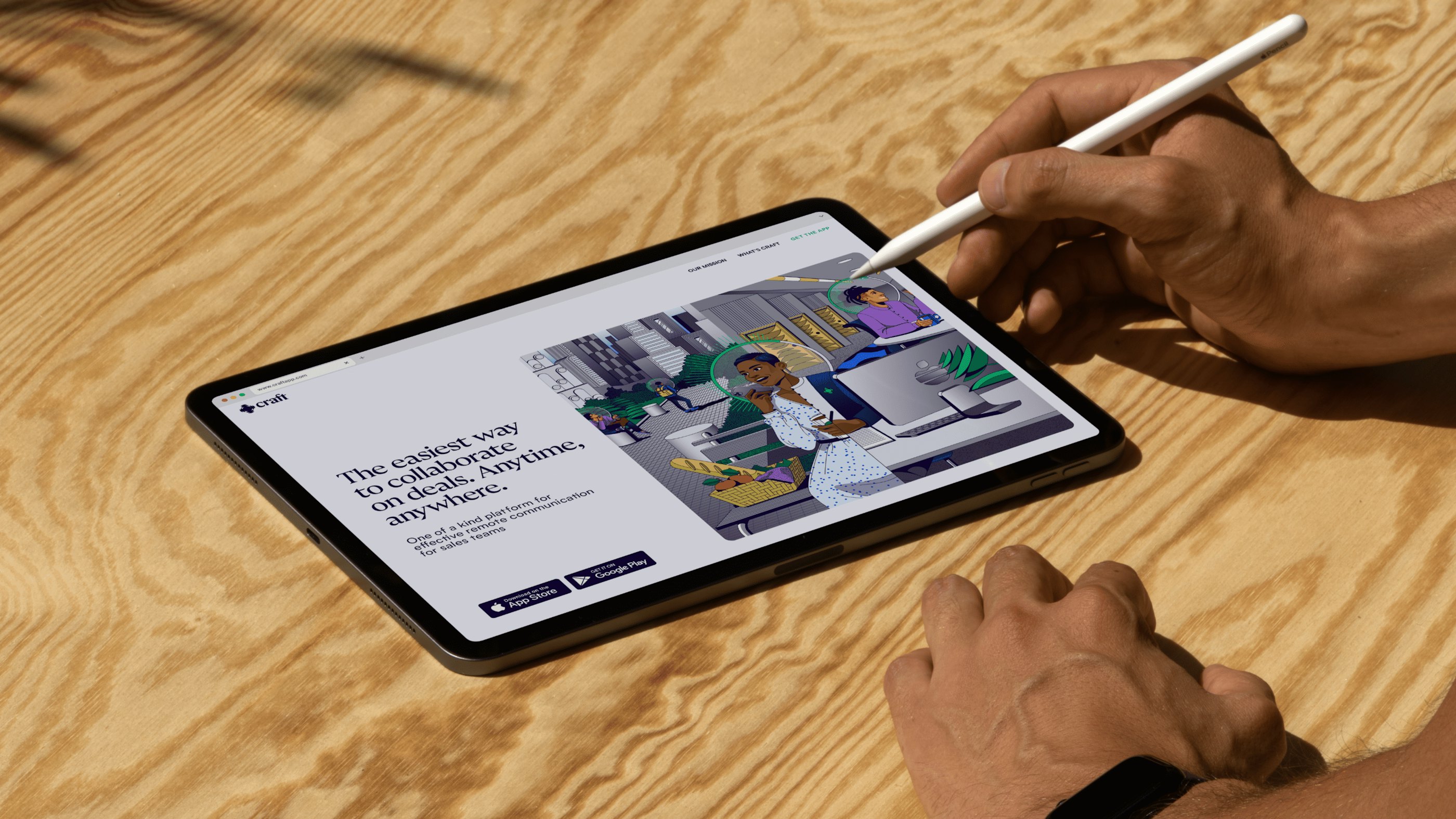 We built an illustrated visual identity that uses sound wave inspired elements and elements of the app's UI to build a brand world where people and technology are merged in one, where whole world is built out of sound waves. That depicts visually how sales reps feel when they are in the flow, achieving work-life balance by working from anywhere - from the gym, while having picnic in a park or hiking in the mountains.
