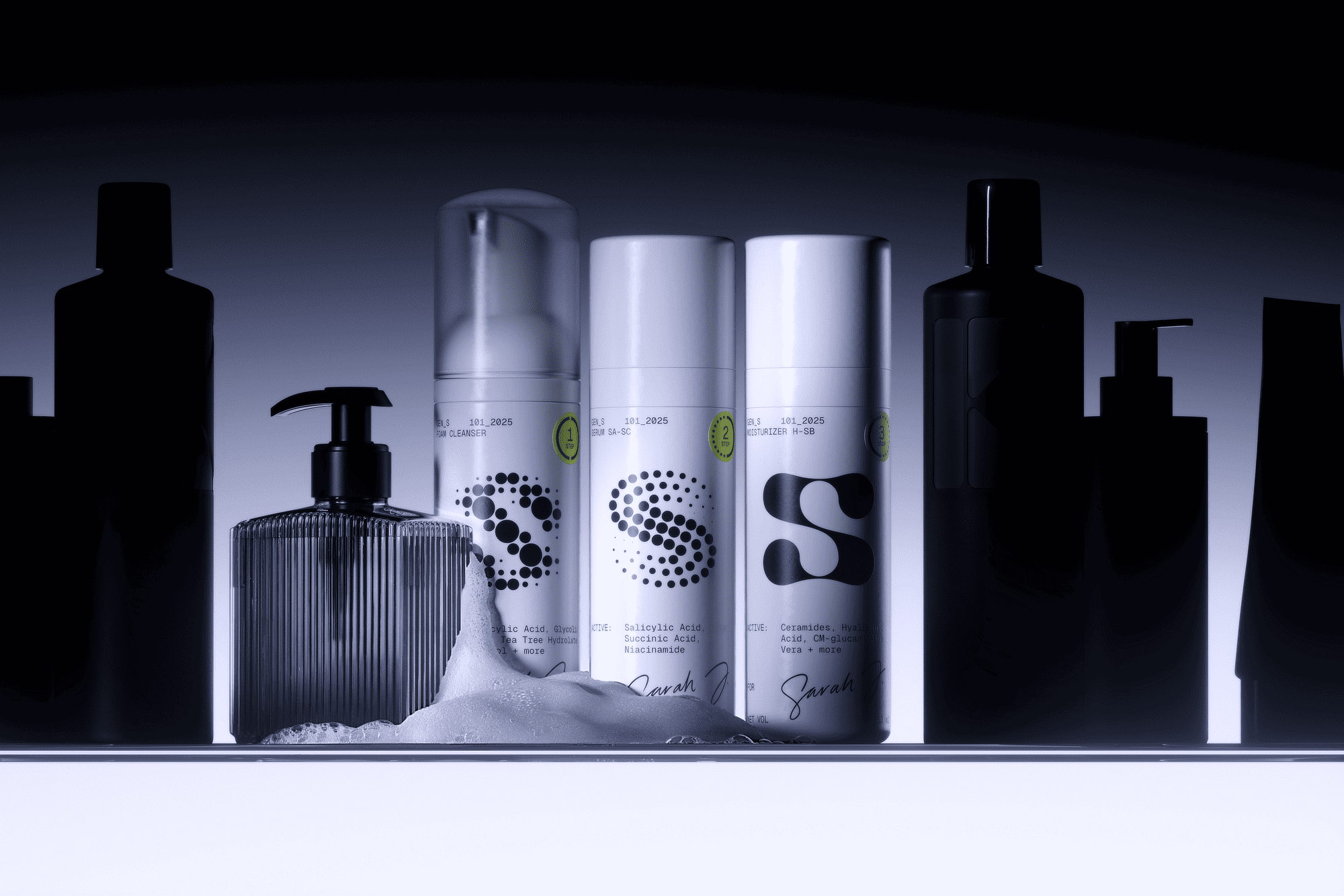 We created a visual identity that is minimal yet confident—rooted in bold simplicity with a human touch. The design system centers around the letter S, formed from modular dot units. These dots represent both blemishes and their transformations: a droplet of liquid, a particle of powder, a foam bubble—symbolic of care, change, and skin renewal.